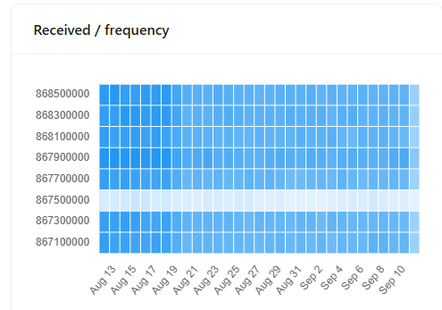 My Chirpstack system consists of several thousand devices, all located in the EU region. At only one location, I have devices that transmit very poorly on one frequency (867.5). The reason for this is that it is a train station with many shops and technical systems. The frequency appears to be congested.