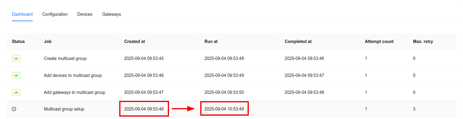 I had a problme when i test fuota on my devices, after Add gateways to multicast group it’s successful, it is noted that the next job will take place in 1 hour.